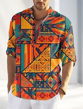 Homme Aztèque Sweatshirt Ethnique Vintage Rétro manche longue Col haut Cadeau Voyage Vêtements de rue Jaune Bleu Orange Boutons Devant Automne Hiver Designer S M L XL XXL XXXL