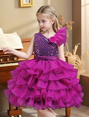 Robe de Demoiselle d'Honneur Fille Fille Robe de soirée Tenue de mariage Soirée Mariage Formel Élégant Adorable Princesse Patchwork Maille Couleur Unie Sans manches Col Rond Jaune Rose Claire 4 ans