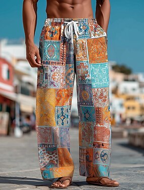 Homme Bohème Bloc de Couleur Patchwork Pantalons Pantalons Amples Taille Moyenne Ethnique Vintage Rétro Maison Extérieur Vacances Cordon de serrage Taille Élastique in in france they say Pontalon