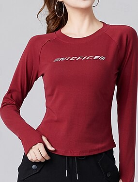 Femmes Couleur Unie T-shirt de course T-shirt de Gym Haut de sport Printemps Automne manche longue Athleisure Coton Chaud Doux Respirant Salle de sport Randonnée Course Entraînement Yoga Rouge vin