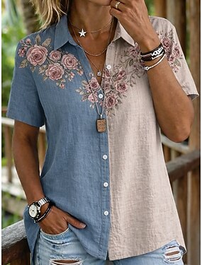 Femmes Chemise Boutons Imprimé Fleuri Graphique ancien Élégant Moderne Manche Courte Col de chemise Hauts Réguliers Quotidien Bureau Bleu Jaune Vert Été Printemps