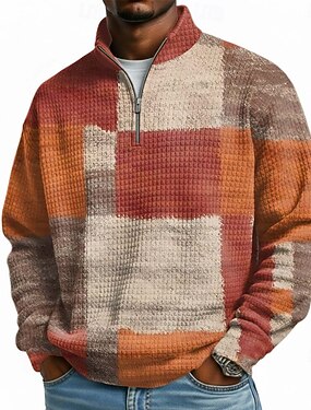 Homme Géométrique Plaid Gauffré Sweatshirt Mode Quotidien Classique Occasionnel Col montant Zip quart Extérieur Maison Bureau Travail Bleu Jaune Orange Vert Zip Up Automne Hiver Designer S M L XL XXL