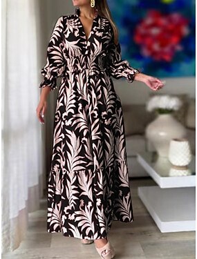 Femmes Robe Midi Robe trapèze Vacances Occasionnel Extérieur Sortir Coupe régulière Fleuri manche longue Col en V Noir Blanche Jaune Rose Claire Été Printemps Automne