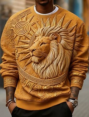 Homme Illusion d'optique Lion Impression 3D Sweatshirt Occasionnel 3D manche longue Col ras du cou Vacances Soirée Cadeau Jaune Violet Orange Marron Gris Col rond 3D Toutes saisons Designer S M L XL