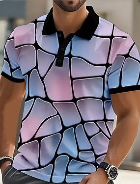 Homme Géométrique Polo Manche Courte Polos Chemises à Col Occasionnel Athleisure Tenue quotidienne Boutons Été Printemps Bleu Jaune Violet