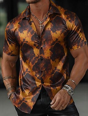 Homme Géométrique Marbre Art abstrait Chemise Chemise d'été Chemise Boutonnée Manche Courte Mode Décontractée Extérieur Vacances Été Printemps Col Rabattu Impression 3D chemises à col Jaune Violet