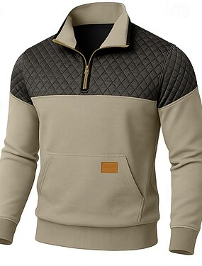 Homme Sweat-shirt Sweat-shirt gaufré Sweat à capuche Pull Sweat-shirt quart de fermeture éclair Vert Véronèse Rouge Bordeaux Bleu Roi Marron Kaki Col montant Uni Patchwork Sport & Loisir Occasionnel