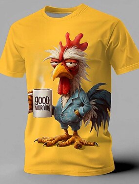 T-shirt coq imprimé 3D « bonjour », pyjama homme, mug à café « poulet grincheux », haut à manches courtes jaune, vêtements, tailles S, M, L, XL, XXL, XXXL