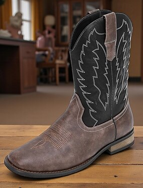 Bottes de cowboy western pour hommes, bout carré, à enfiler, mi-mollet, bottes d'équitation de travail, chaussures de style campagnard décontractées pour un usage quotidien