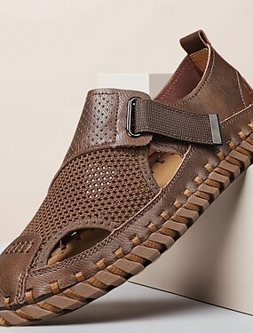 Sandales pour hommes en similicuir marron à bride réglable, bout ouvert, chaussures décontractées pour les vacances d'été et les activités de plein air