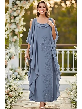 Fourreau Colonne Longueur cheville Robe de Soirée Robe de Cocktail Robe d'invité de mariage Robe de Mère de Mariée Demi Manches Col Bénitier Élégant Simple robe demoiselle d honneur Chiffon avec