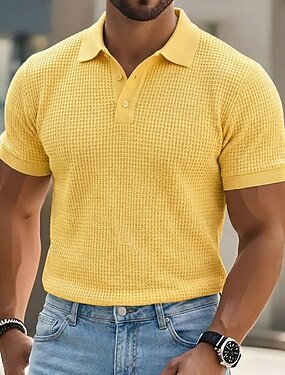 Homme Chemises Polo Gaufre Texturé Occasionnel Fête Revers Col Polo Côtelé Manche Courte Mode Basique Uni Texturé Boutons Flexible Été Printemps Coupe régulière Blanche Jaune Rouge Bordeaux Vert