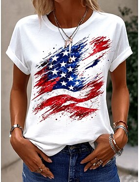 Jour de l'Indépendance Américaine Femmes T-shirt Imprimé Graphique Drapeau Élégant Classique Occasionnel Manche Courte Col ras du cou Hauts Réguliers Quotidien Blanche Jaune Rose Claire Vert Gris Ét