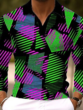 Homme Géométrique Polo manche longue Polos Revers Occasionnel Extérieur Athleisure Tenue quotidienne Impression 3D Boutons Printemps Automne Hiver Jaune Bleu Vert