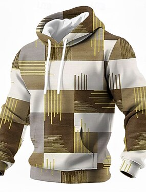 Homme Géométrique Sweat à capuche pull Sweatshirt Mode Occasionnel manche longue Col ras du cou Maison Extérieur Vêtements de rue Bleu Jaune Marron Cordon de serrage Automne Hiver Designer S M L XL