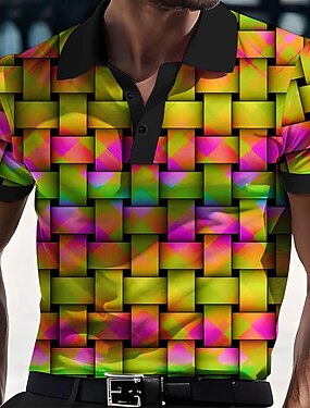 Homme Graphique Néon Polo Chemise de golf Manche Courte Polos Chemises à Col Occasionnel Vêtements de vacances Vêtements de rave Tenues de fête Boutons Impression 3D Jaune Violet