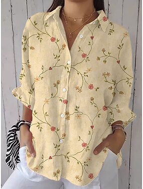 Femmes Chemise Chemise boutonnée Chemise Décontractée Chemise de Plage Imprimé Graphique Feuille Élégant Classique Occasionnel manche longue Col de chemise Hauts Réguliers Quotidien Fête Sortir Jaune