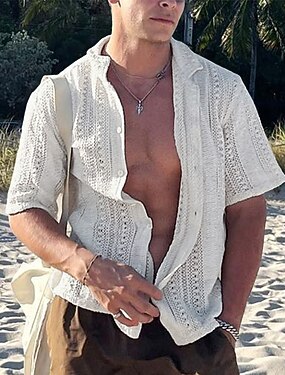 Homme Chemise Chemise Décontractée Chemise Boutonnée Noir Blanche Jaune Abricot Gris Manche Courte Uni Col Rabattu Occasionnel Quotidien Évider Vêtement Tenue Élégant Mode Occasionnel Chaussures de