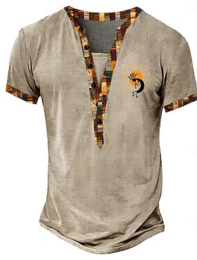 Homme Carnaval Graphique Tribal Imprimé bandana T-shirt Chemise Henley Manche Courte Designer Ethnique Occasionnel Occasionnel Quotidien Été Printemps Bleu Jaune Rose Claire Marron Col montant Henley