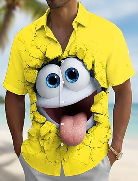 Homme Illusion d'optique Dessin Animé 3D Visage Souriant Chemise Chemise Boutonnée Manche Courte Drôle Quotidien Vacances Été Printemps Col Rabattu Impression 3D chemises à col Bleu Jaune