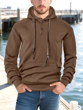 Homme Sweat à capuche Sweat à capuche boutonné Noir Blanche Jaune bleu marine Café À capuche Uni Jacquard Cordon de serrage Avec Poches A côtes Sport & Loisir Quotidien Fête Polyester Streetwear
