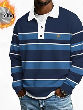 Homme Rayures horizontales Polo Chemises Themmal manche longue Polos Revers Occasionnel Athleisure Fête Tenue quotidienne Impression 3D Automne Hiver Bleu Jaune Vert