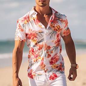 Homme Fleuri Chemise Manche Courte Occasionnel Extérieur Rue Décontracté Quotidien Automne Col Rabattu Boutons Imprimé Rose Claire