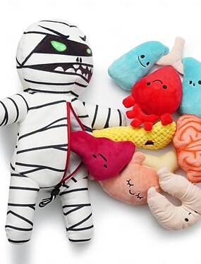 Jouets pour chiens momie zombie avec organes : peluches amusantes et couineuses à mâcher pour chiots, petites et moyennes tailles, jouets puzzle en peluche pour l'éducation canine et le jeu de