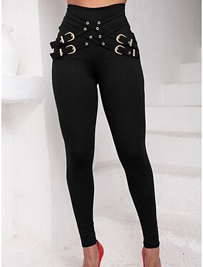 Femmes Chinos Leggings Leggings confortables Mode Streetwear Longueur mollet Taille haute Uni Dentelle Patchwork Confortable Doux Micro-Élastique Extérieur Rue Bleu Noir Vin Été Coupe régulière