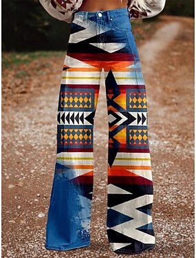 Rétro Vintage Années 1970 Y2K Pantalon Pantalon à jambes larges Hippie Disco Taille haute Tribal Style faux jean Déguisement Femmes Carnaval Décontracté Quotidien Festival de Musique Soirée à thème
