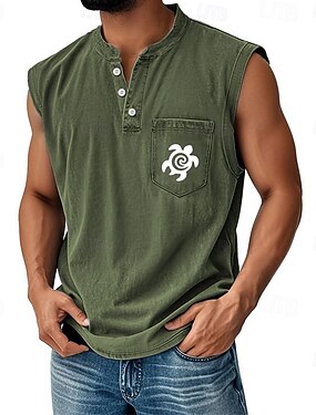 Homme Débardeur Chemise jean Sans manches Henley Printemps Graphique Uni Mode Designer Basique Teinture en vêtement Délavé Lavage vintage Vacances Rue Sortir Noir Vert foncé Kaki T-shirt haut de