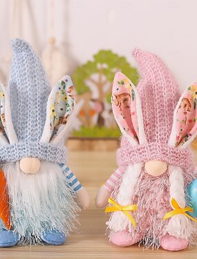 Cadeaux de Pâques 2 Paquets Gnomes en Peluche de Lapin Décorations de Pâques pour la Maison Tomte de Printemps avec Oreilles de Lapin et Carotte Décor Plateau à Niveaux Ornamental de Vacances