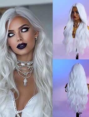 Perruque en dentelle synthétique Bouclé Style 28 pouce Blanc Raie au milieu partie U Perruque Femmes Perruque Blanche
