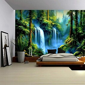 Tenture murale grande tapisserie forêt chute d'eau décoration murale photographie fond de toile rideau maison chambre salon