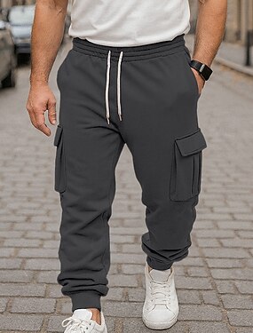 Homme Jogging Cargo Joggings Pantalons Pantalon de survêtement droit Cordon de serrage Avec Poches Taille Élastique Uni Confort Doux Extérieur Quotidien Fête Mode Style Classique Noir Grise