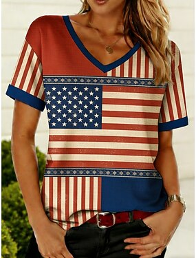 Jour de l'Indépendance Américaine Femmes T-shirt Imprimé Graphique Drapeau Américain ancien Élégant Classique Manche Courte Col en V Hauts Réguliers Quotidien Bleu Noir Rouge Vert Été Printemps