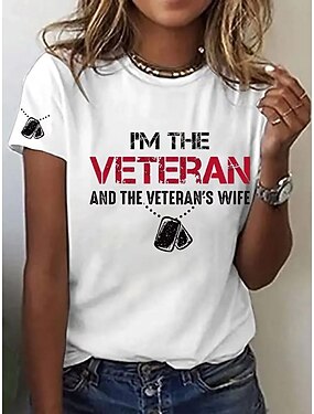 Jour de l'Indépendance Américaine Femmes T-shirt Imprimé Graphique Lettre ancien Élégant Classique Manche Courte Col ras du cou Col rond Hauts Réguliers Occasionnel Quotidien Bleu Noir Blanche Rouge