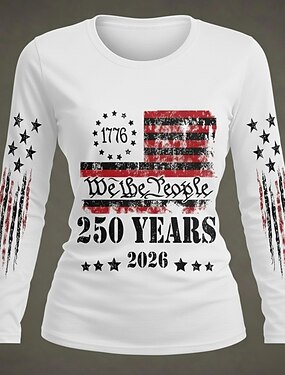 T-shirt patriote pour femmes impression graphique lettre drapeau style classique décontracté à manches longues col rond impression quotidienne blanc-bleu blanc rouge noir