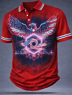 4 juillet 2026, 250e anniversaire Homme Aigle Polo Manche Courte Polos Chemises à Col Occasionnel Extérieur Athleisure Boutons Printemps & Été Bleu Rouge Gris