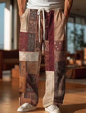 Homme Bohème Géométrique Patchwork Pantalons Pantalons Amples Taille Moyenne Ethnique Vintage Rétro Maison Extérieur Vacances Cordon de serrage Taille Élastique in in france they say Pontalon wide leg