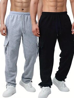 Paquets multiples 2 pièces Homme noir + gris foncé Joggings Jogging Cargo Cordon de serrage Taille Élastique Uni Vacances Tenue quotidienne Polyester Automne