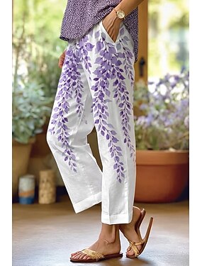 Femmes Slacks Pantalon décontracté Droit Vacances Basique Occasionnel Longueur complète Longueur cheville Naturel Fleuri Graphique Avec Poches Impression Conception à cordon élastique Confortable