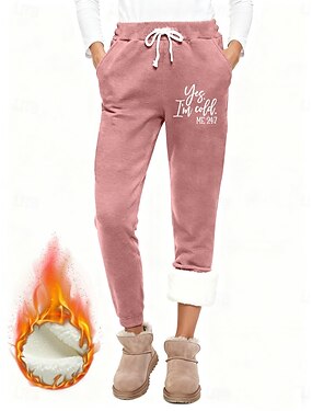 Femmes Joggings Pantalon en polaire Vacances ancien Mode Longueur complète Taille haute Lettre Cordon de serrage Avec Poches Imprimé Chaleur Thermique Coupe-vent Confortable Micro-Élastique Élastique