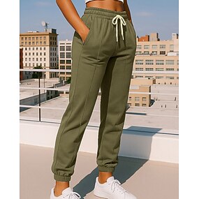 Femmes Pantalons Cargo Pantalons Pantalon décontracté Actif Vacances Mode Longueur complète Taille Moyenne Couleur Unie Uni Cordon de serrage Avec Poches Ceinture Élastique Confort Séchage Rapide Doux