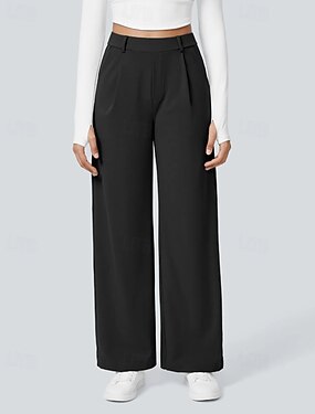 Femmes Jambe large Dress Pants works Pantalons Droit Mode Streetwear Longueur complète Taille haute Uni Avec Poches Respirabilité Confortable Rue Tenue quotidienne Sortir Vert translucide Noir Vin