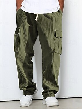 Homme Jogging Cargo Joggings Pantalons Pantalon en velours côtelé Cordon de serrage Avec Poches Taille Élastique Uni Confort Sport en Plein Air Quotidien Mode Occasionnel Noir Vert Véronèse