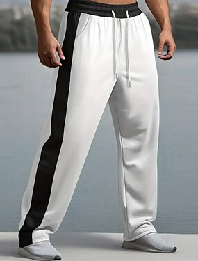 Homme Joggings Jogging à Jambes Larges Pantalons Pantalon de survêtement ouvert en bas Cordon de serrage Bande latérale Taille Élastique Bloc de Couleur Évacuation de l'Humidité Respirant Longueur