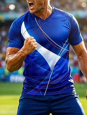 Maillot de football homme bleu, blanc et rouge, imprimé graphique abstrait dégradé, inspiration française, respirant, protection UVF50+