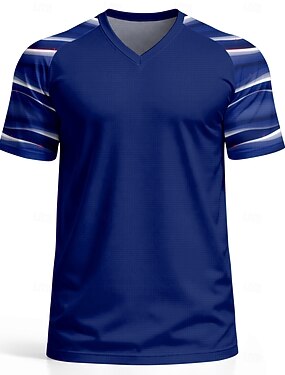 Maillot de football homme inspiré de la France, col en V, bleu, blanc et rouge, dégradé abstrait, mesh respirant, protection UFP50+