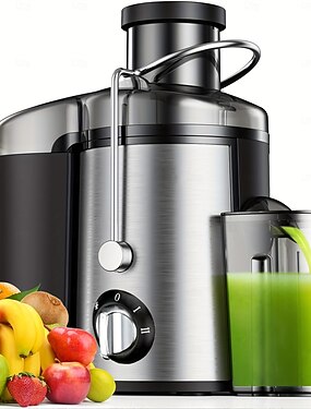Extracteur de jus centrifuge avec goulotte d'alimentation de 7,6 cm de large pour fruits et légumes entiers, 2 vitesses, en acier inoxydable, facile à nettoyer &Extracteur à haut rendement, sans BPA,